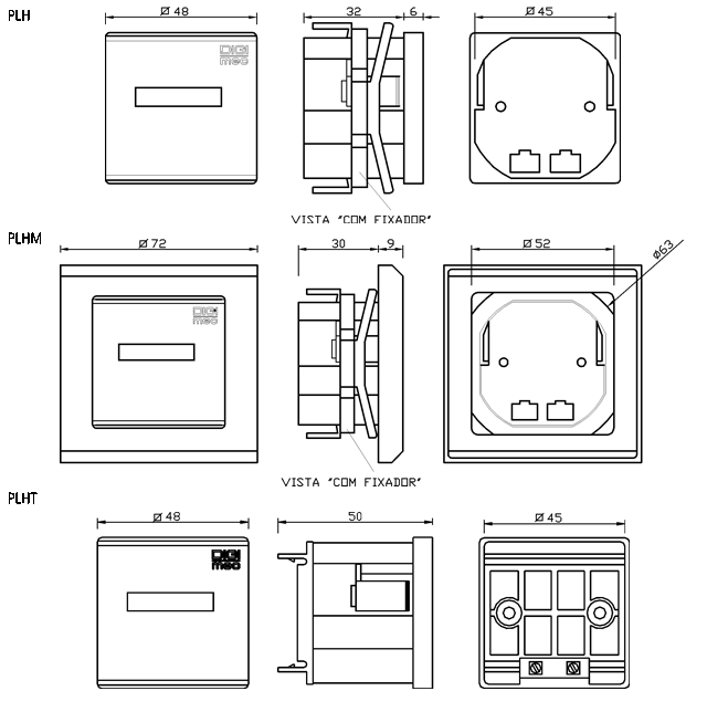 | Alimentação (+10% -15%) | 6 - 30 Vcc / 10 - 80 Vcc / 110 Vcc / 110 ou 220 Vca (especificar) |